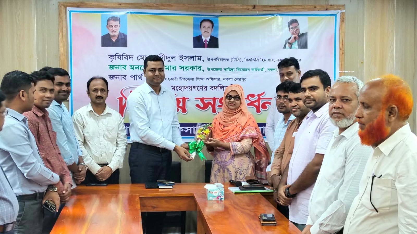 শেরপুরের নকলা থেকে বদলি হওয়া তিন কর্মকর্তাকে বিদায় সংবর্ধনা প্রদান করা হয়েছে। উপজেলা নির্বাহী কর্মকর্তা মো: জাহাঙ্গীর আলম এর সভাপতিত্বে বৃহস্পতিবারে নকলা অফিসার্স ক্লাবের উদ্যোগে ওই বিদায় সংবর্ধনা প্রদান ও বরণ করা হয়।