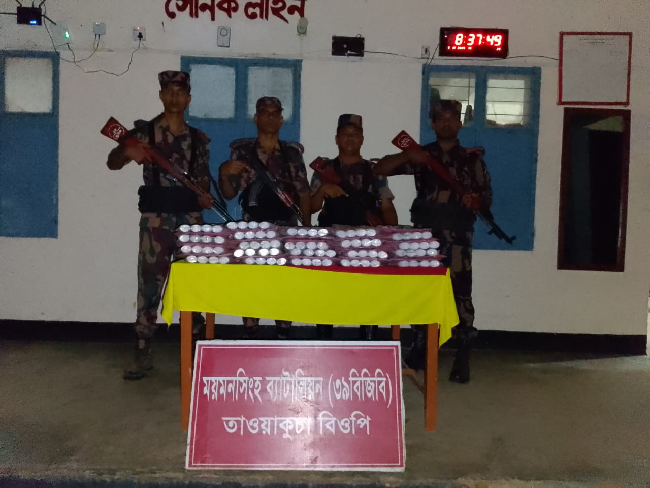 ৩৯ বর্ডার গার্ড ব্যাটালিয়ন ময়মনসিংহের অধিনায়ক লেফটেন্যান্ট কর্নেল মেহেদী হাসানের দিকনির্দেশনায় তাওয়াকুচা সীমান্ত ফাঁড়ির ইনচার্জ নায়েক সুবেদার মো. আতিয়ার রহমানের নেতৃত্বে বিজিবির একটি টহল দল মালিকবিহীন অবস্থায় ভারতীয় পন্ডস ব্র্যান্ডের ৭২২ পিস ফেসওয়াশ জব্দ করে।