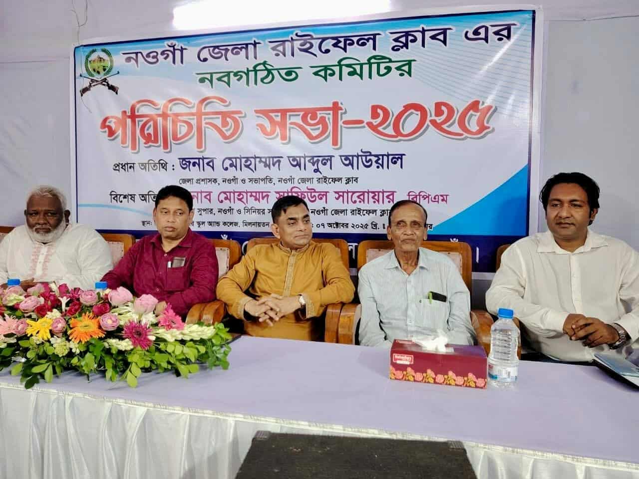 নওগাঁ জেলা রাইফেল ক্লাবের পরিচিতি সভা অনুষ্ঠিত হয়েছে। ০৭ অক্টোবর মঙ্গলবার সন্ধ্যায় নওগাঁ বিয়াম ল্যাবরেটরী স্কুল মিলনায়তনে এই সভা অনুষ্ঠিত হয়।